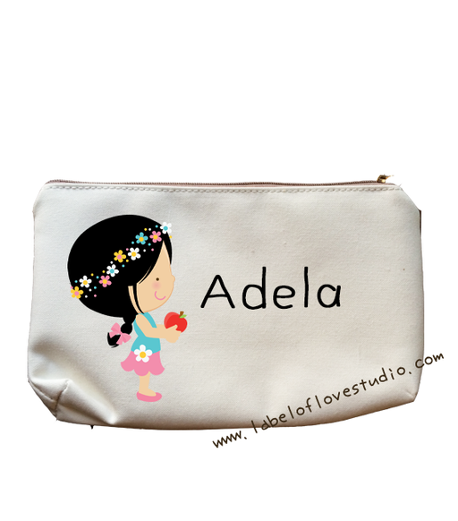 This beautiful and roomy pencil case looks even better with a name on it. Choose your own character and font. Measures 18x12cm with a zipper finish...