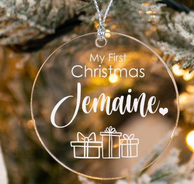 This is a lovely ornament for a baby's first Christmas. Measuring 8cm in diameter, it can be customized to any names you want.