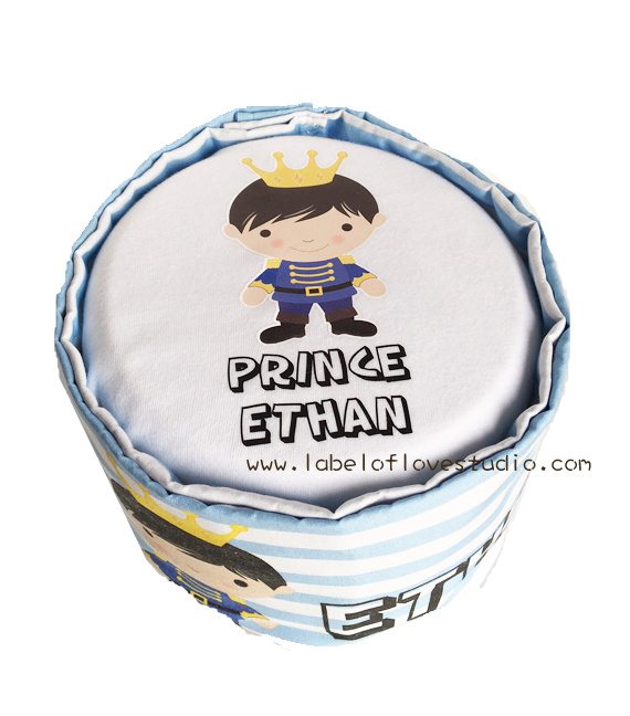 - Diaper cake is made up of a personalized romper, a 50x50 cm handmade blanket, and 10 disposable diapers.